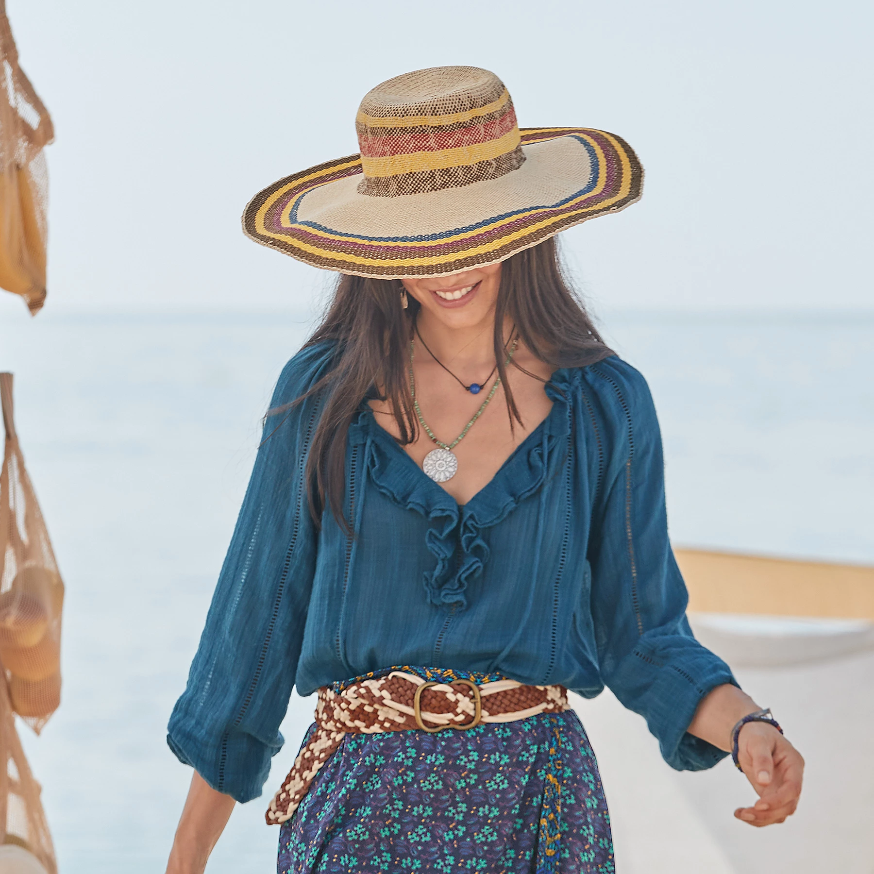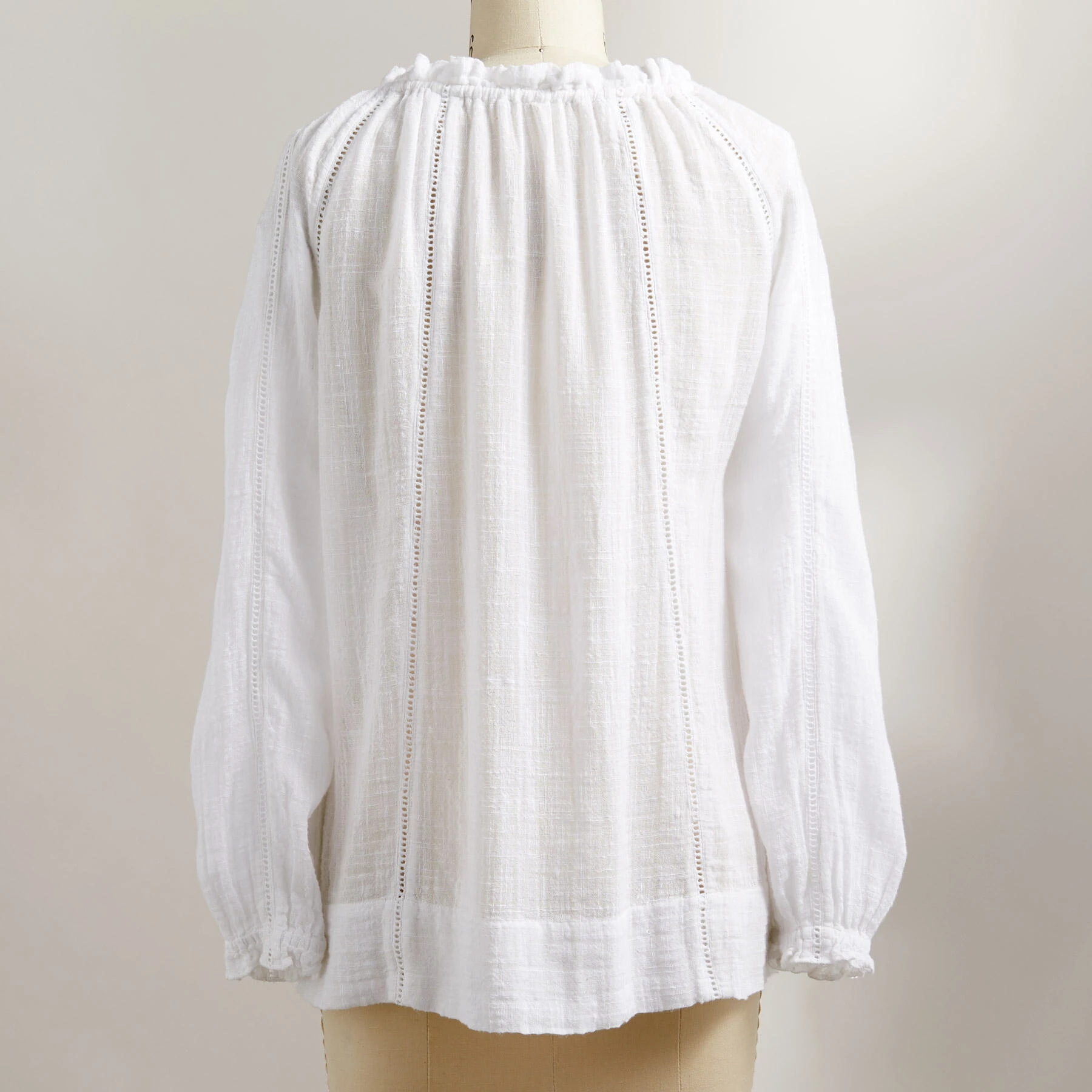 Embrace your artistic spirit in our sheer, easy-fit top with ladder lace, ruffle neckline and tassel ties. Cotton/viscose. Hand wash. Imported. Exclusive. Sizes XS (0 to 2), S (4 to 6), M (8 to 10), L (12 to 14), XL (16 to 18), XXL (20 to 22). Approx. 26-1/2″L.
