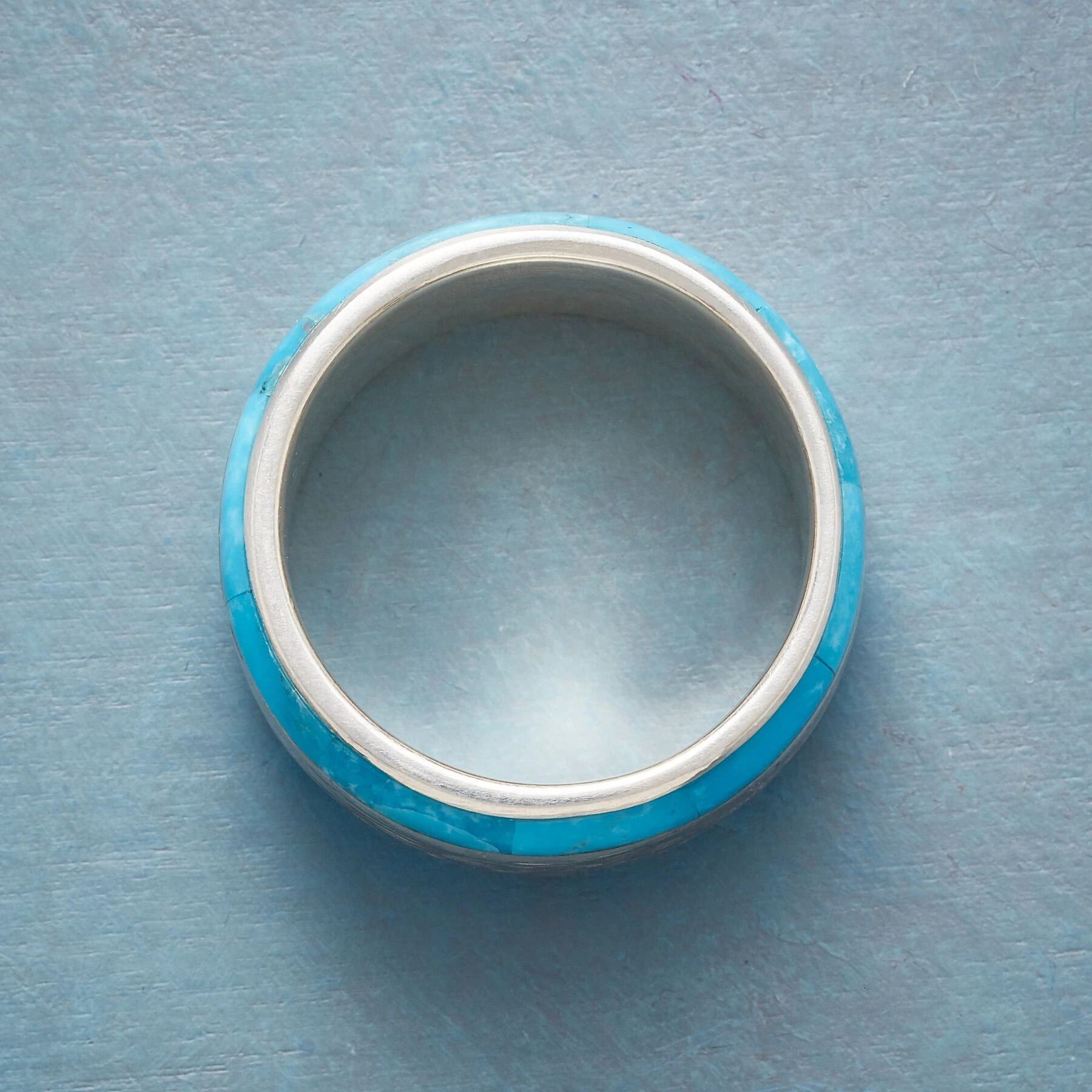 Kingman turquoise channels its infinite blues as it runs alongside hand-etched sterling silver in this ruggedly handsome band. Exclusive. Whole sizes 9 to 12.