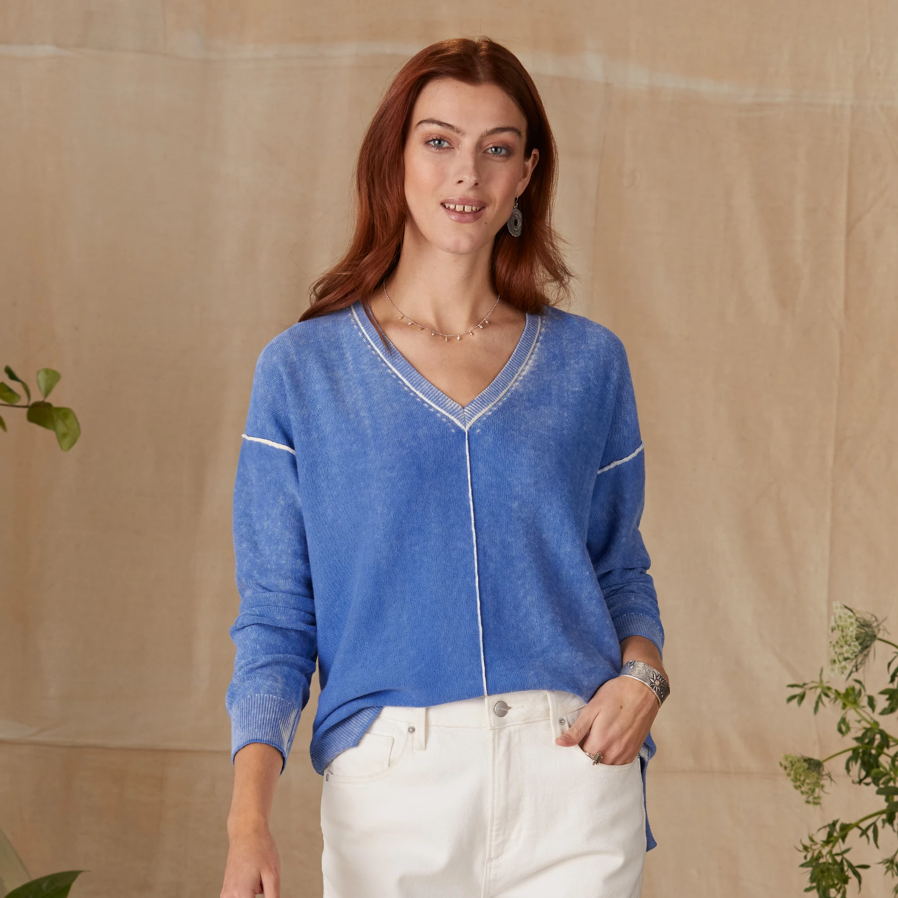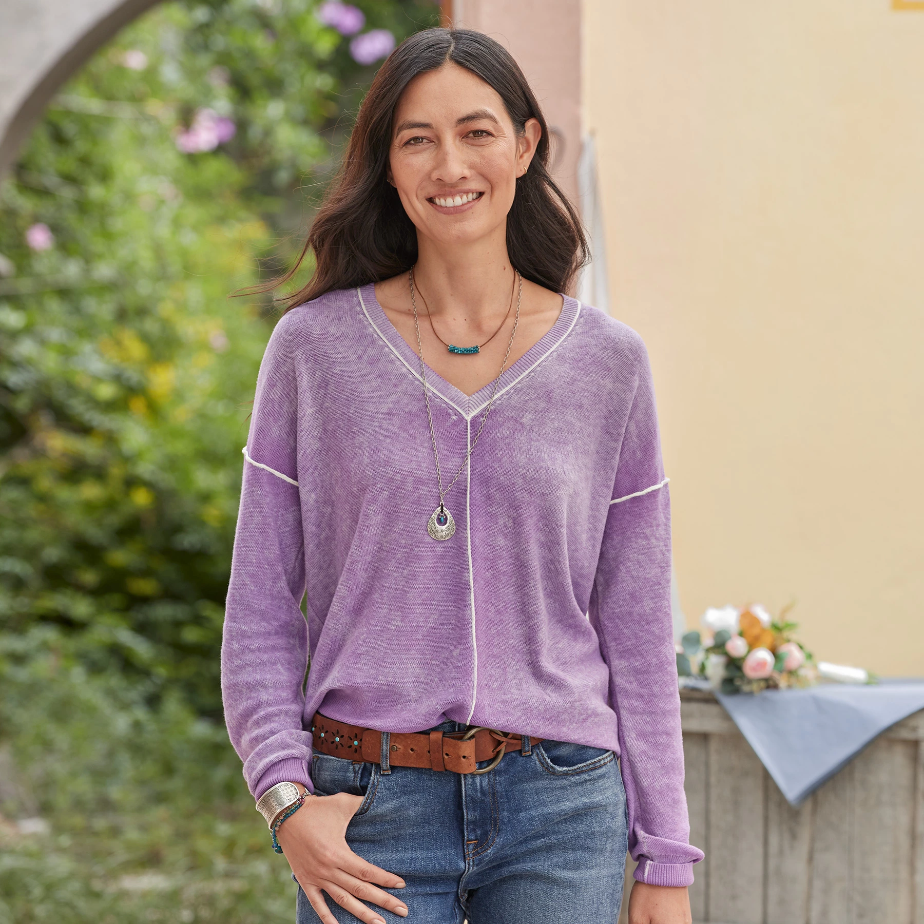 Lightweight V-neck faded for a vintage feel. Exposed seams, rib trim. Cotton. Hand wash. Imported. Exclusive. Sizes XS (0 to 2), S (4 to 6), M (8 to 10), L (12 to 14), XL (16 to 18), XXL (20 to 22). Approx. 25″L.
