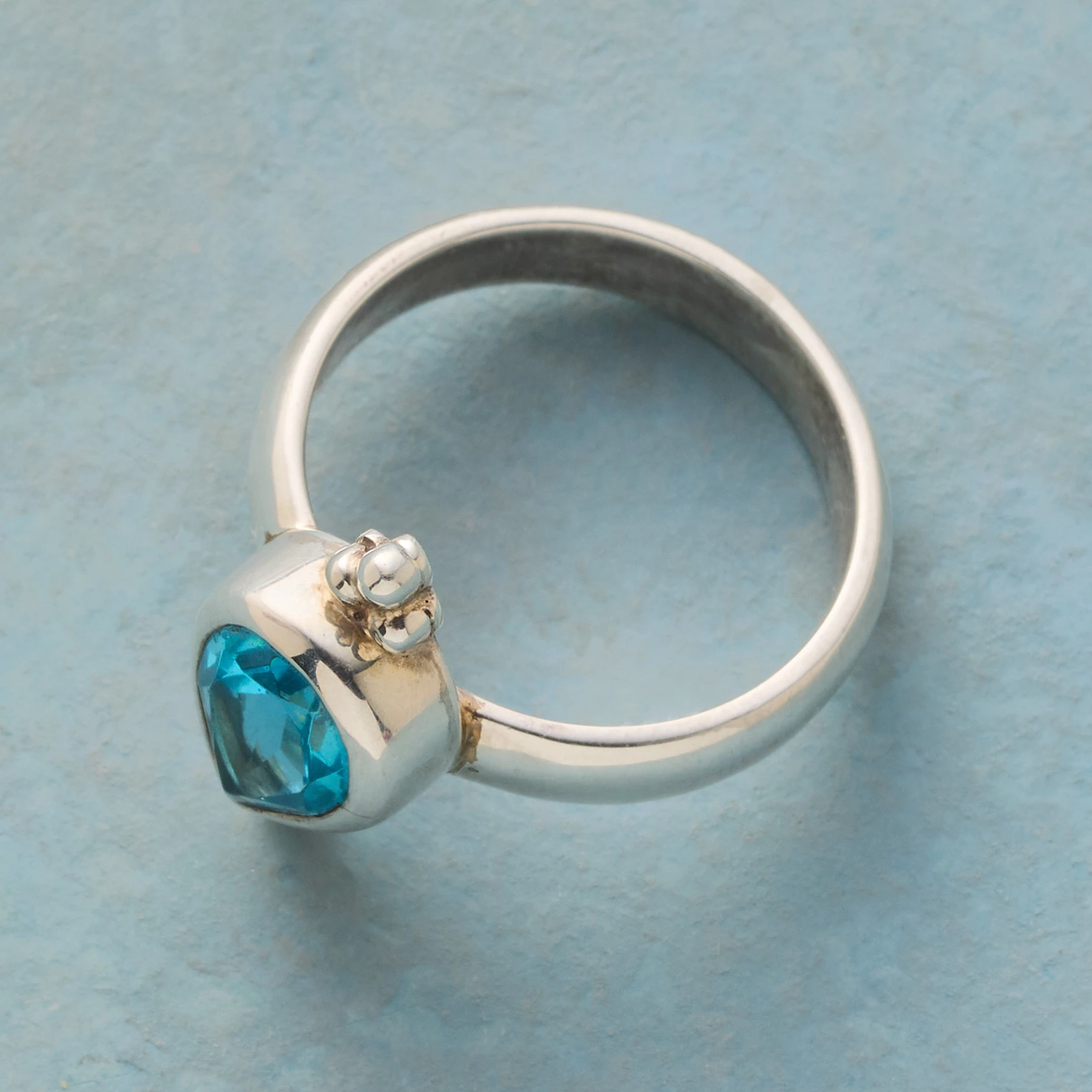 Faceted blue topaz makes a regal presentation set in a teardrop bezel with granulation bead accents. Exclusive. Sterling silver. Handcrafted in whole sizes 5-9.