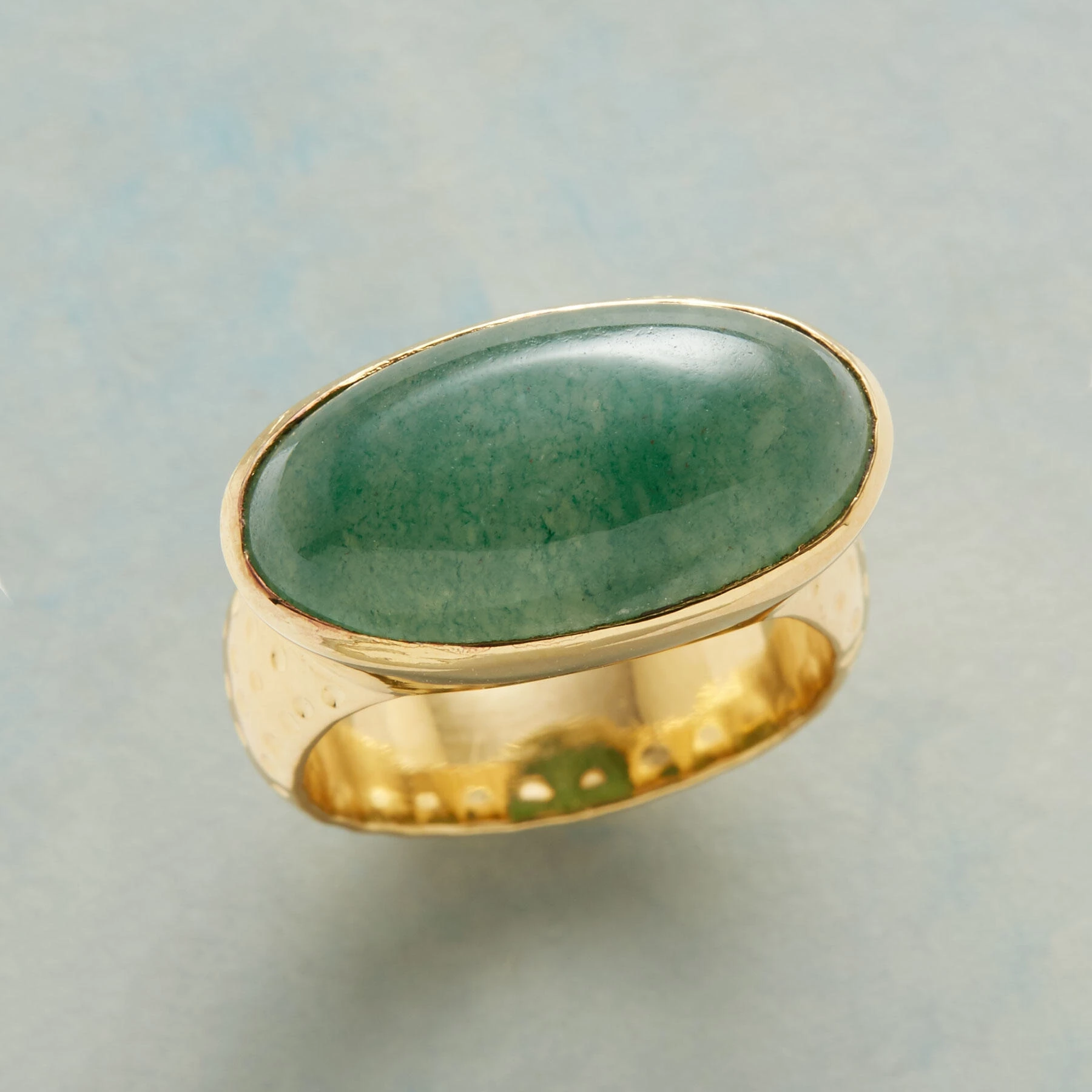 Jade has been prized since ancient times for its intriguing green hue. Ours is set in a smooth bezel ring with a dimpled band handcrafted of 22kt gold vermeil. Sundance exclusive. Whole sizes 5 to 9.