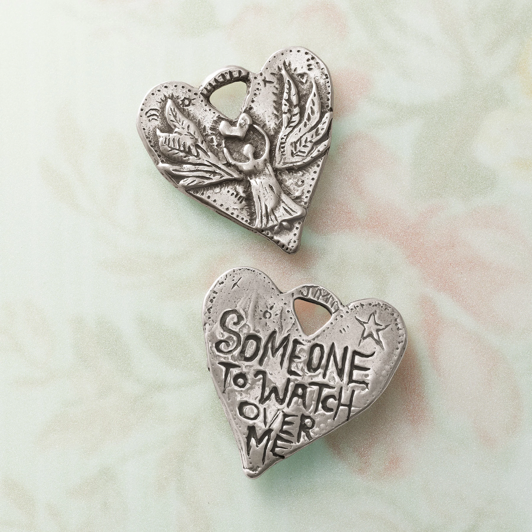 Jes MaHarry inscribes her guardian angel heart charm with a suitable sentiment: “Someone to watch over me.” The pewter talisman tucks into a pocket or dangles from a ribbon. A Sundance exclusive, handmade in USA. 1-1/8″W x 1-1/8″L.