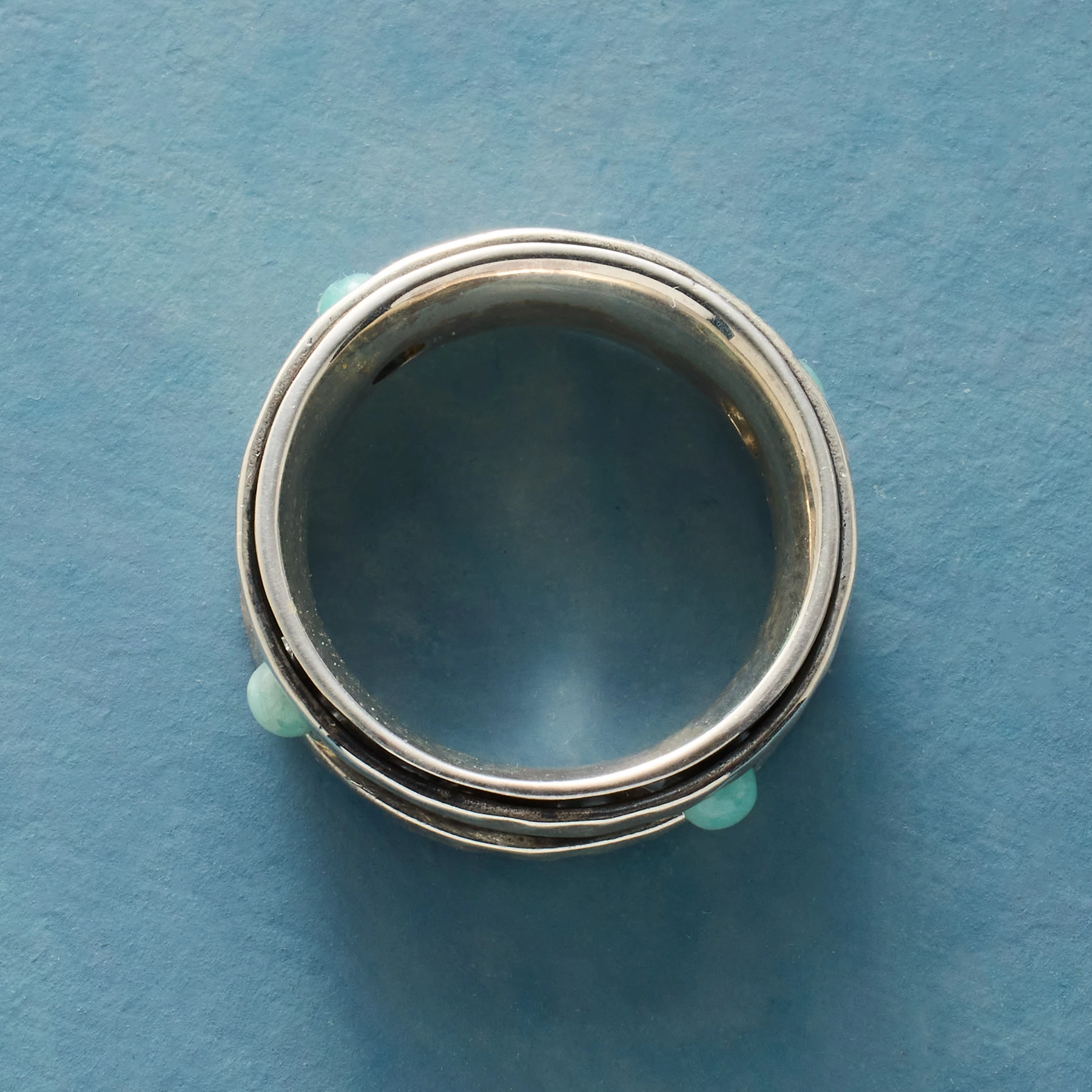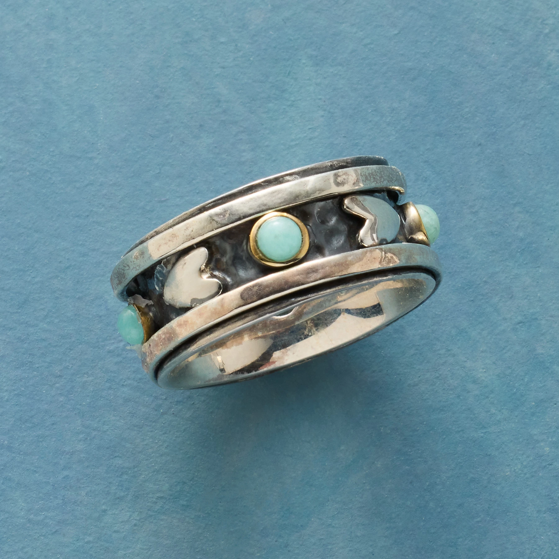 Keep love close with a sterling silver and 14kt gold-plated band circled with hearts and moments of amazonite. Exclusive. Whole sizes 5 to 10.