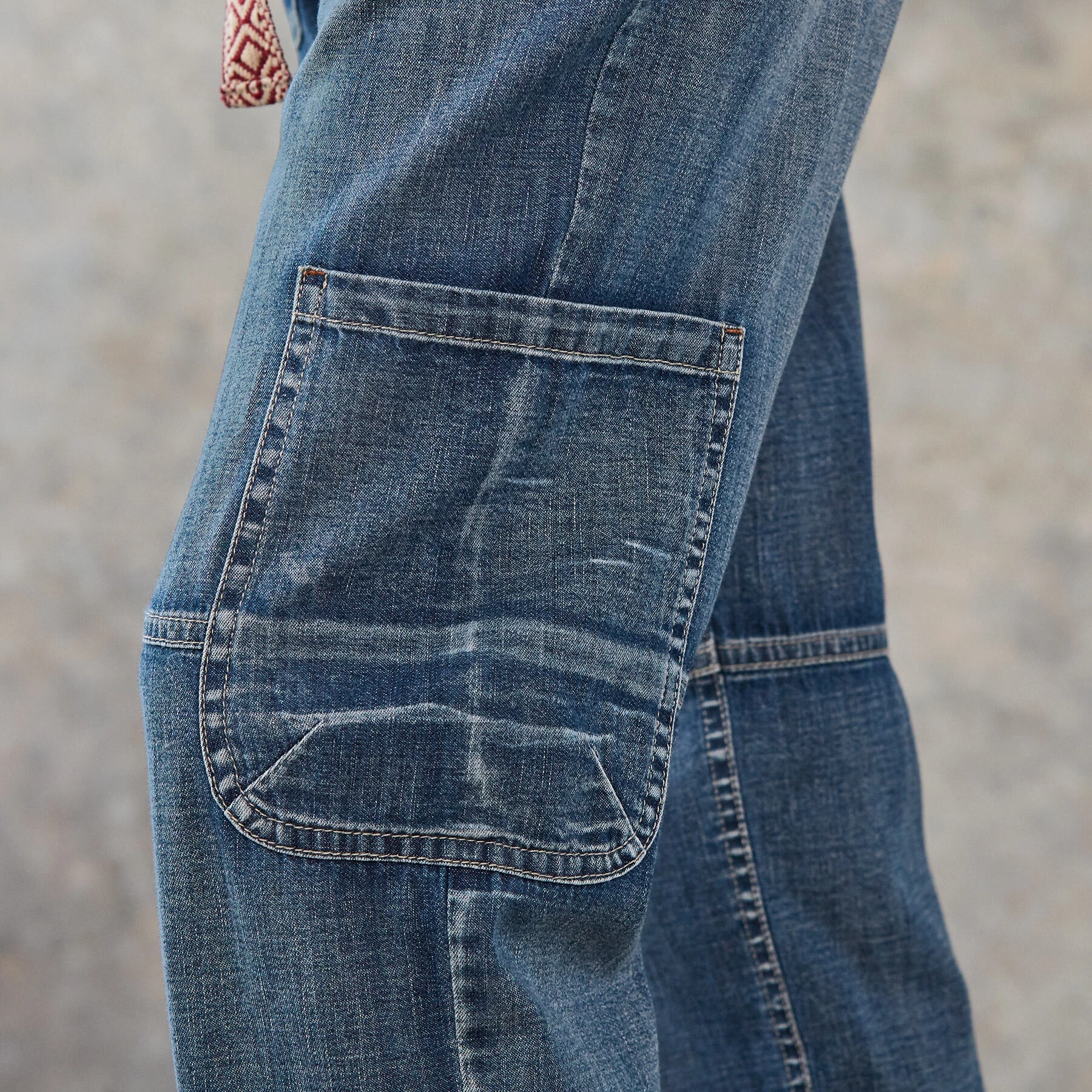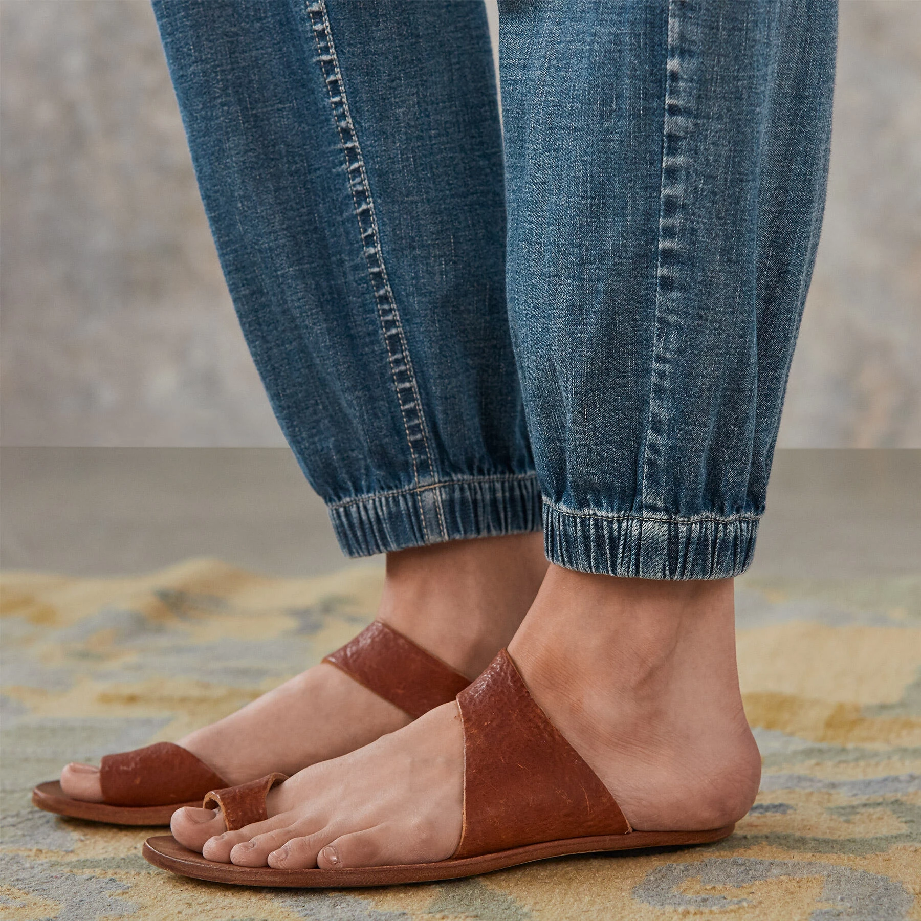 Soft, denim joggers with signature Sundance buttons, elastic cuffs, ethnic-print fabric belt. Cotton. Machine wash. Imported. Exclusive. Sizes 2 to 16. 28″ inseam, 10-3/8″ rise, 5″ leg opening.