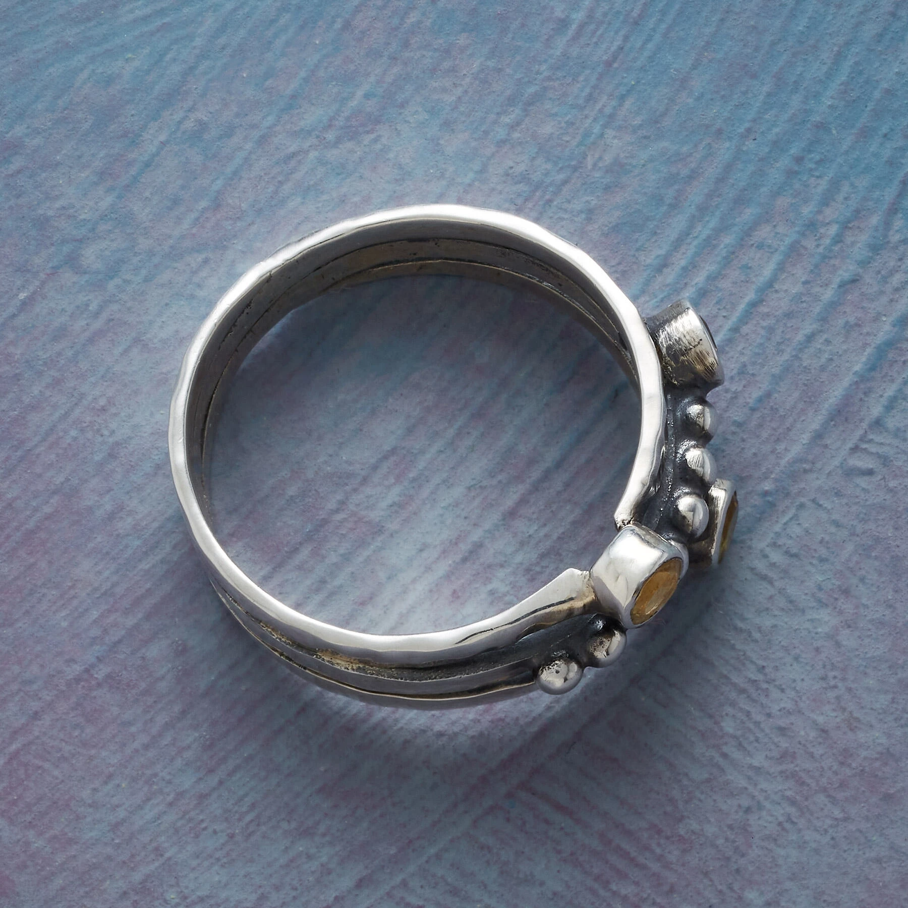 Sunny citrine sparkles alongside sterling silver bubbles on a sterling silver ring cast by hand. Imported. Exclusive. Whole sizes 5-10.