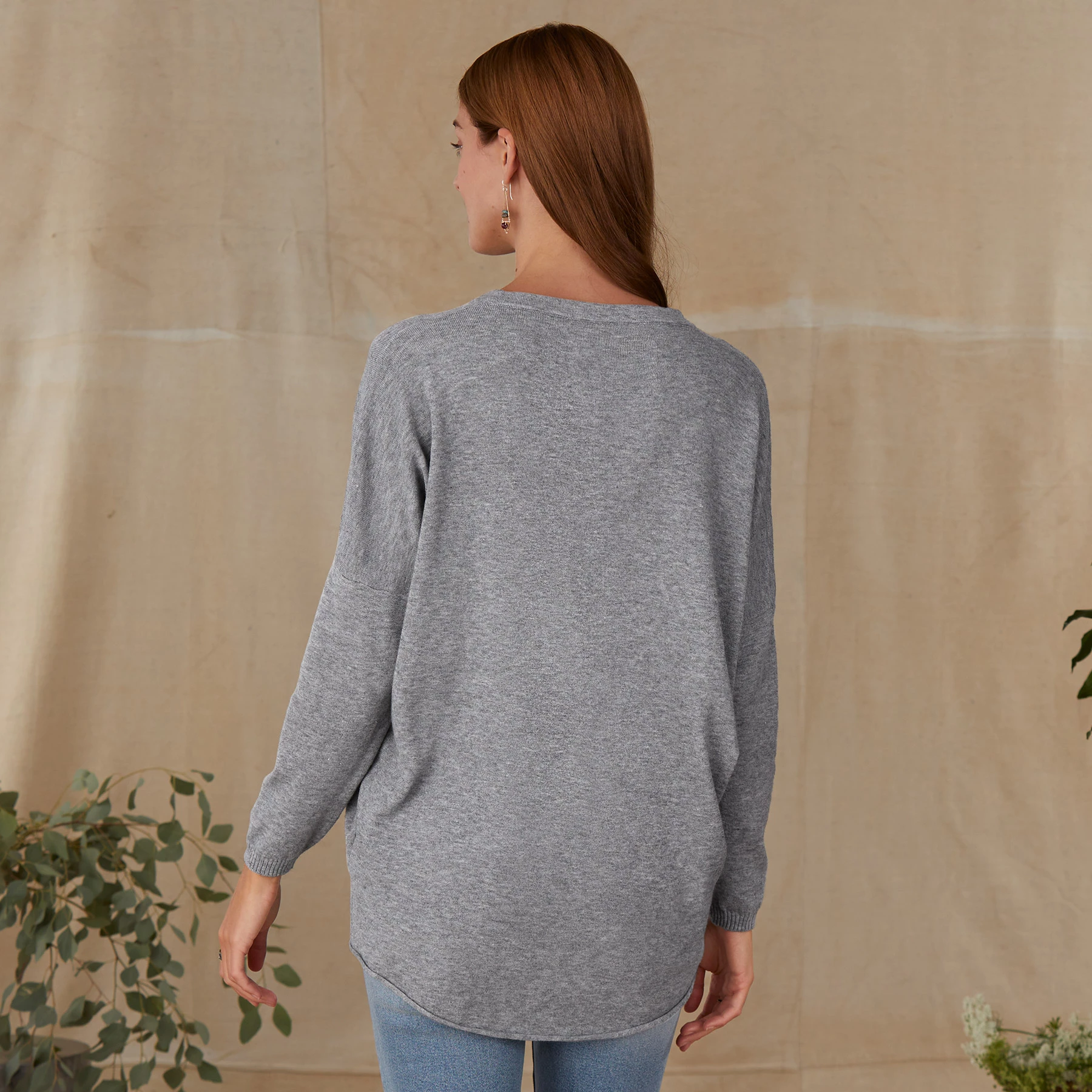 A flattering, fluid knit with a touch of cashmere drapes like a dream in this lightweight sweater with dropped shoulders, V-neck and arched, hi-lo hem. Viscose/modal/spandex/cashmere. Hand wash. Italy. Sizes XS (2), S (4 to 6), M (8 to 10), L (12 to 14), XL (16). Front approx. 26″L.
