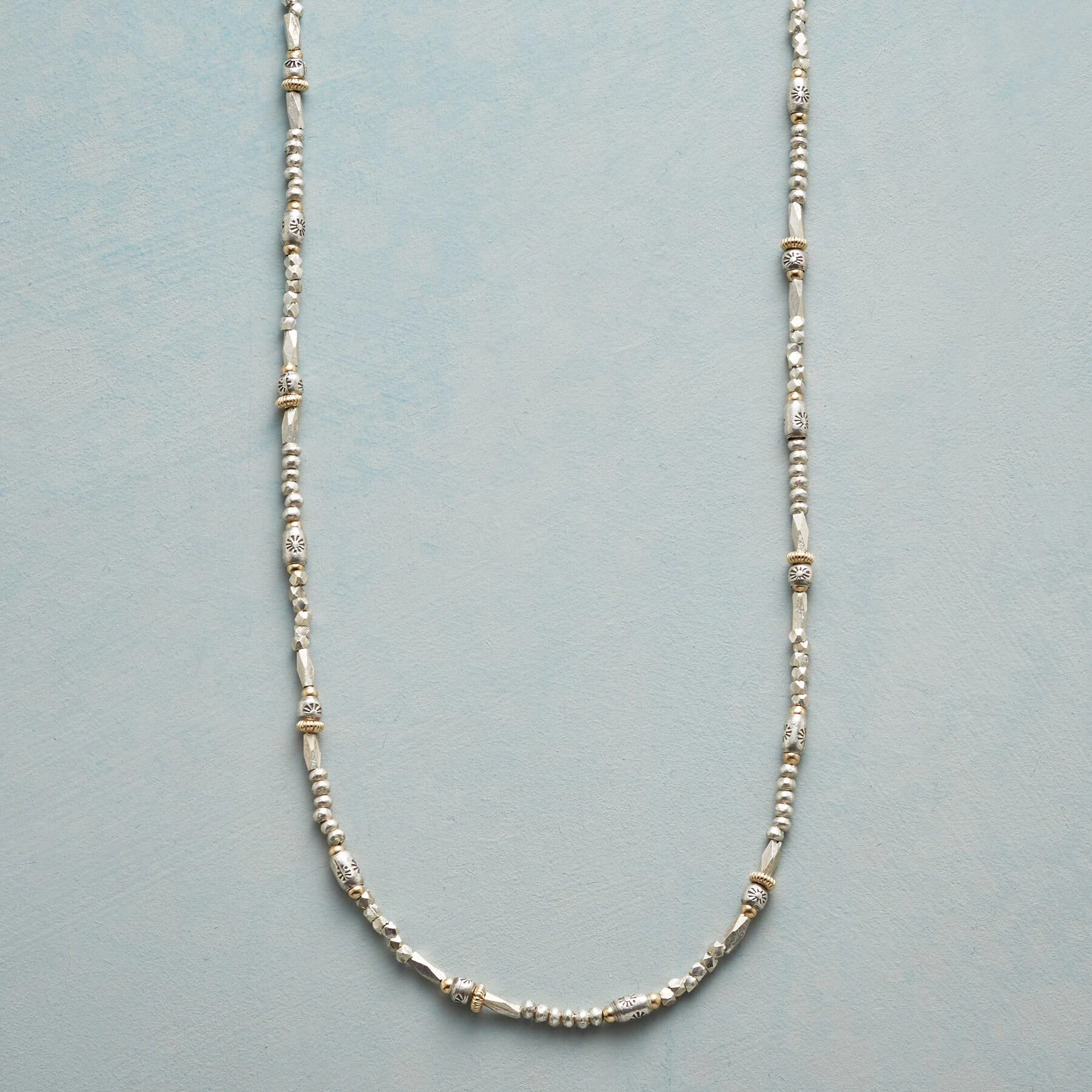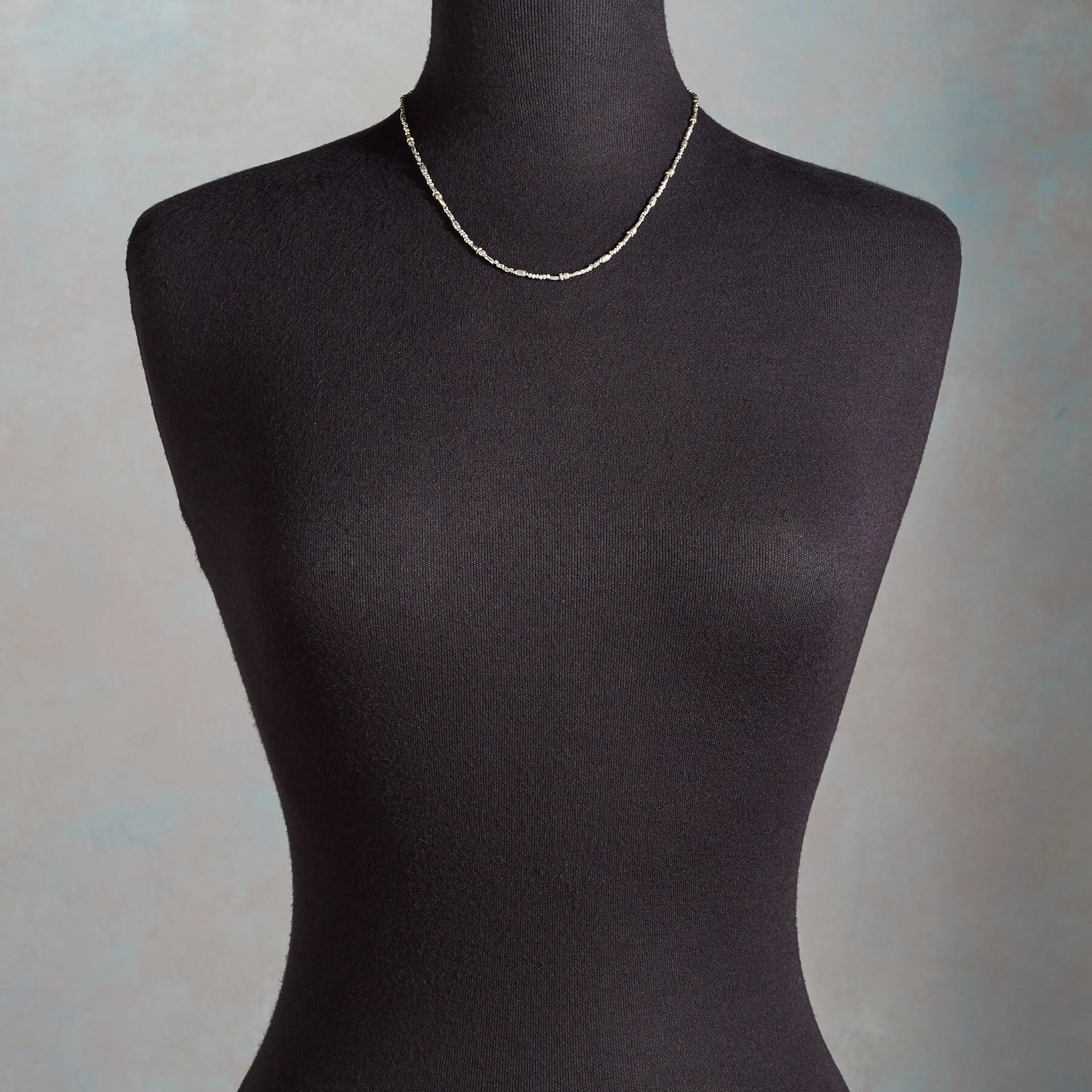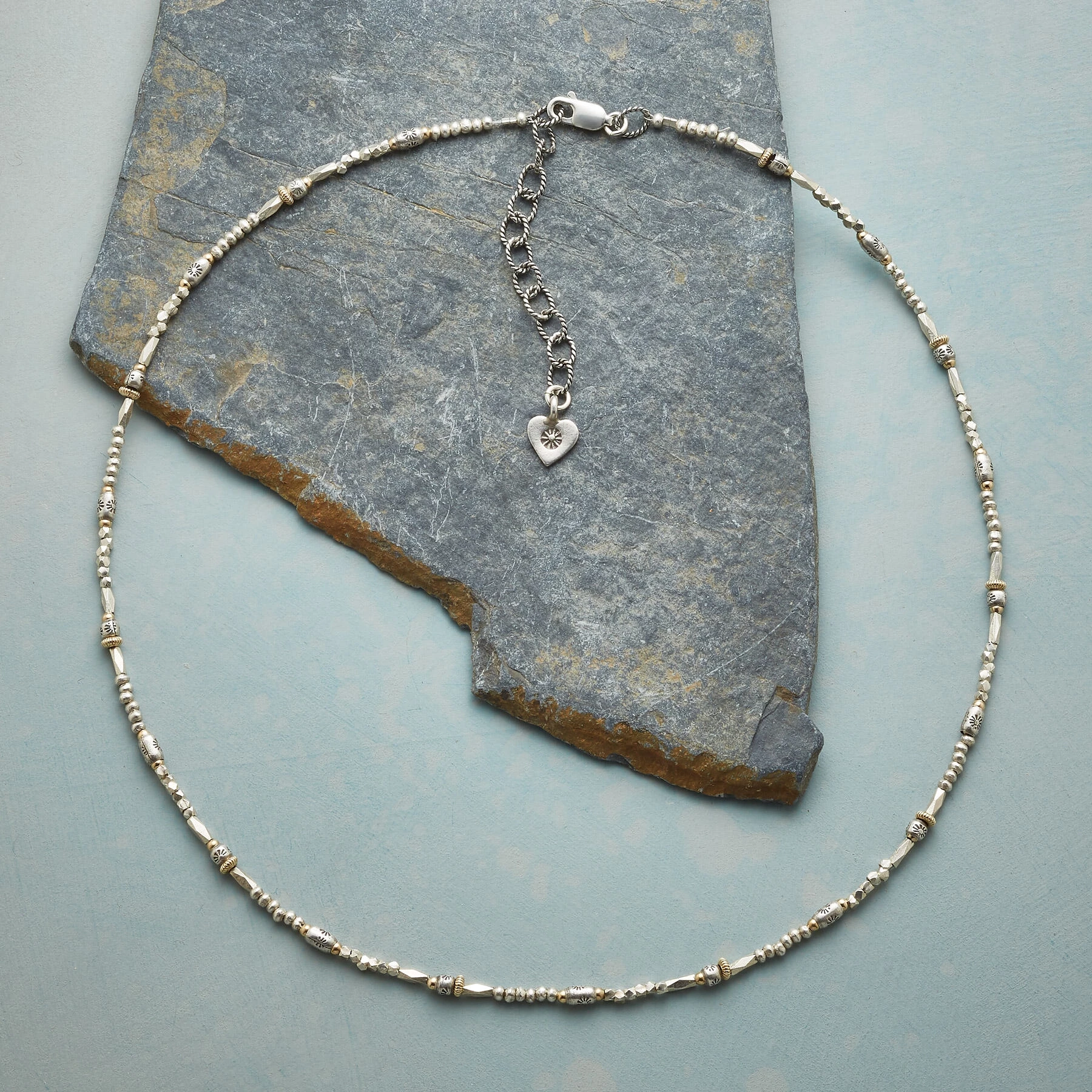 Metals mingle harmoniously in this brilliantly simple necklace, handmade with Thai silver beads and 14kt gold filled beads. Sterling silver lobster clasp. Made in USA. Exclusive. 16″-17-1/2″l.