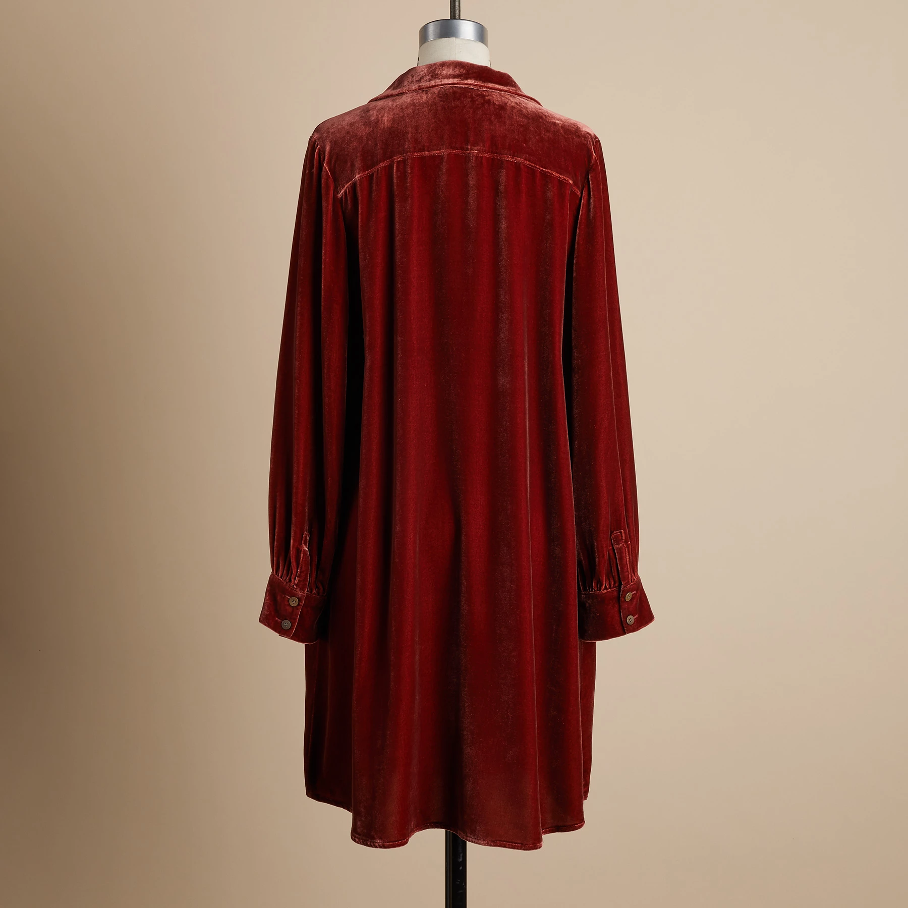 An updated Sundance favorite, our easy velvet dress with smoked shell button cuffs. Rayon/silk. Dry clean. Imported. Exclusive. Sizes XS (0-2), S (4-6), M (8-10), L (12-14), XL (16-18), XXL (20-22). Approx. 37″l.