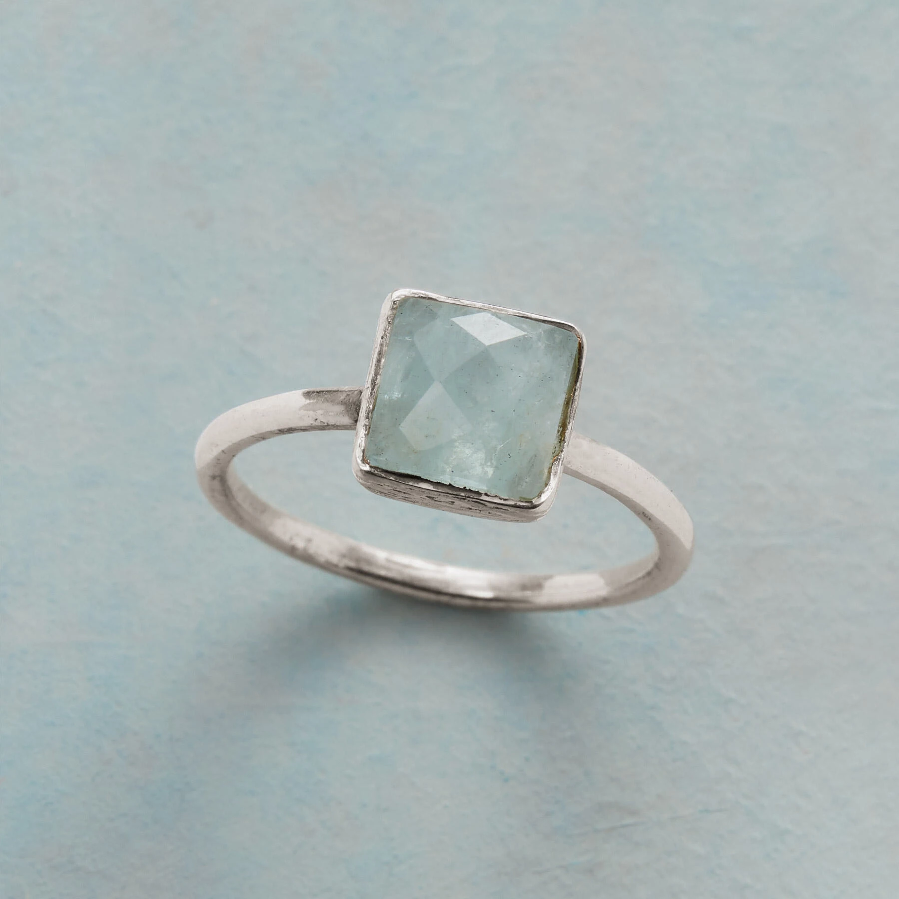 Light catches the checkerboard facets on our chalcedony and sterling silver ring like sunlight on tropical waters. Exclusive. Whole sizes 5-9.