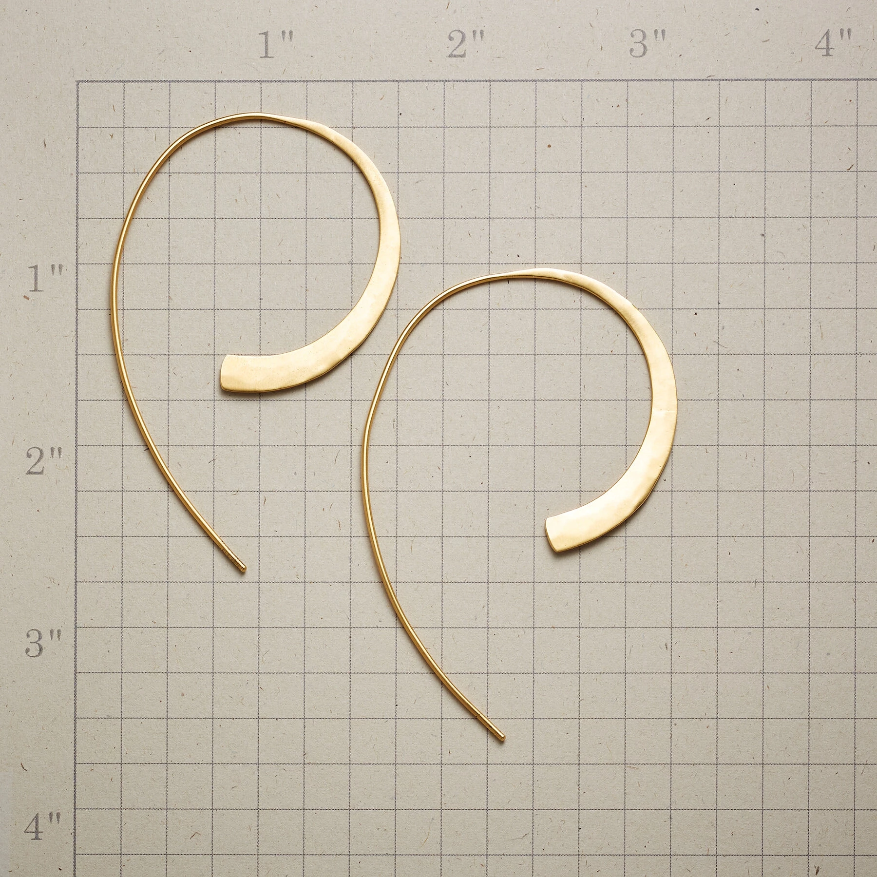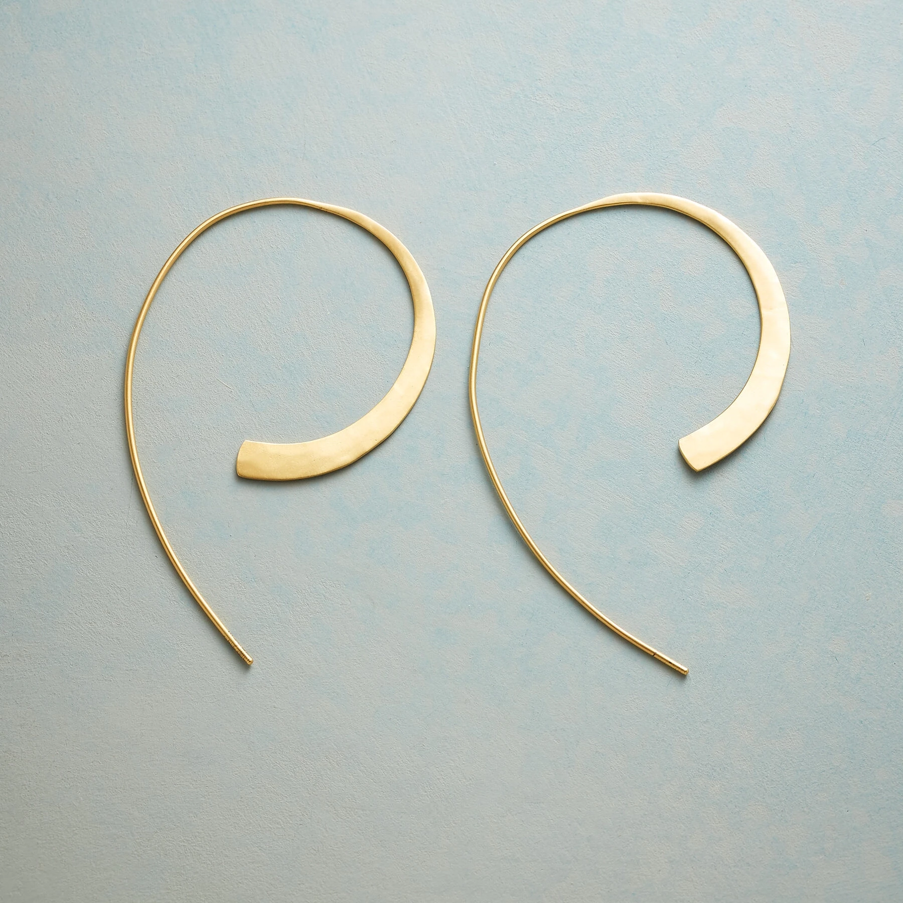 In these ‘Swoop’ earrings, hammered half hoops taper dramatically to slip gracefully through the earlobe, their statement bold and beautiful. 18kt gold plated. 2-1/4″L.