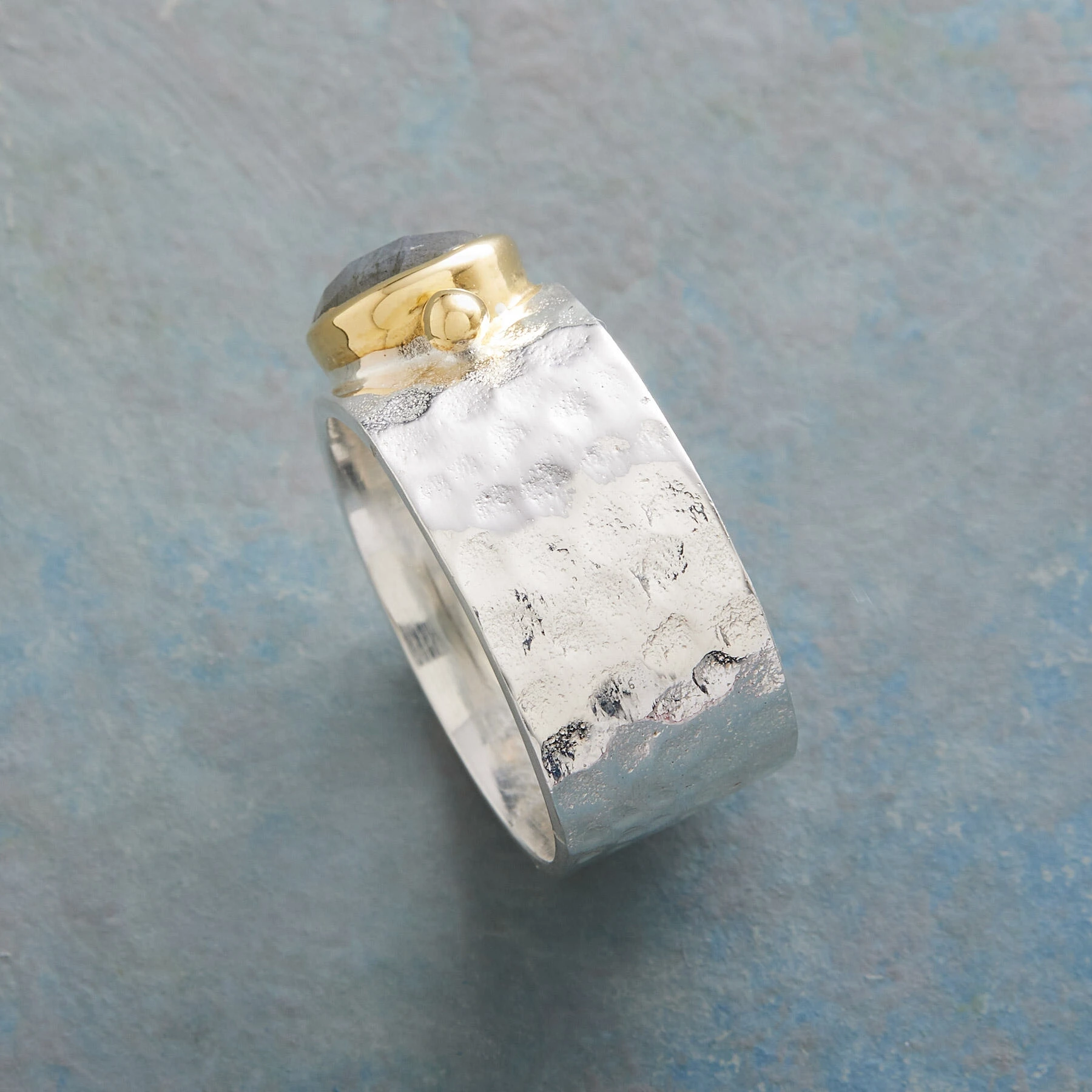 Faceted labradorite’s iridescence reveals a different range of hues with every glance. Handcrafted of sterling silver and 14kt gold vermeil. Exclusive. Whole sizes 5 to 9. 3/8″W.